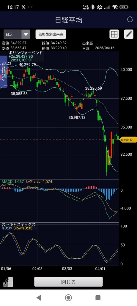 昨日(4/16)の日経平均株価、正直に言って予想を外しました。